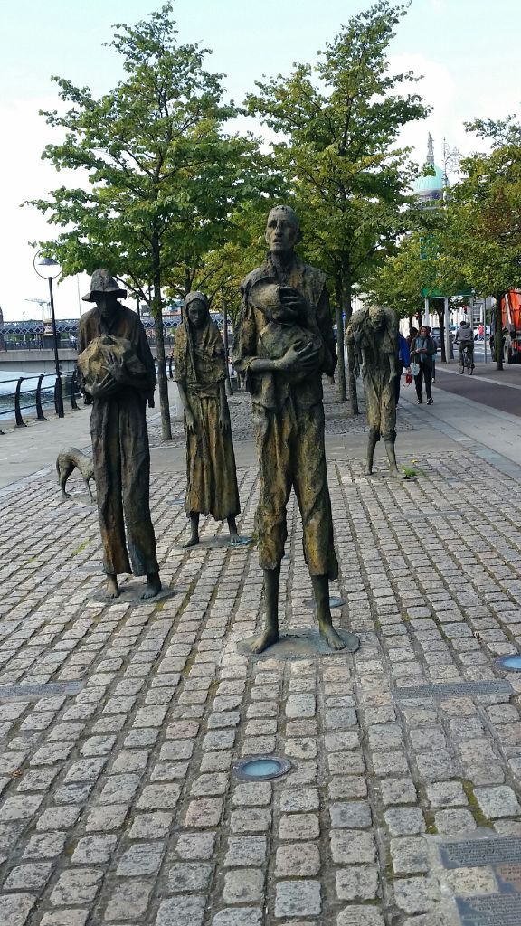 For a more sobering discovery of the force behind a lot of emigration, steps outside the museum you can find the Famine Memorial. Erected in 1997, the memorial is a graphic (and disturbing) reminder of the Great Famine that occurred mid-1800’s. During this time, Ireland’s population decreased between 20-25% due to starvation from potato blight and emigration. That’s 2,000,000 people who either died or left – in four years.