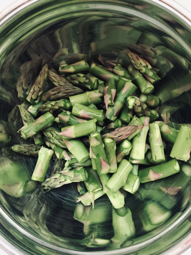 1 bunch thin asparagus stalks, trimmed and cut into 1”/2.5 cm pieces