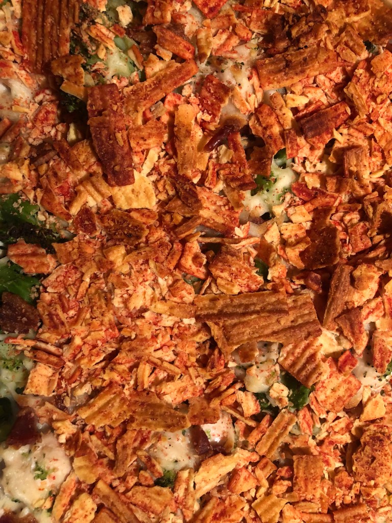 One of them – a chicken and broccoli casserole topped with crushed cheese crackers – inspired this dinner. The bacon ranch twist was all my idea, because what isn’t improved by the addition of bacon??